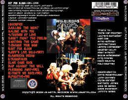 NEW CD FROM WILD DOGS:OUT FOR BLOOD, 16 SONG COLLECTION featuring THE ORIGINAL SHRAPNEL LINEUP,LIVE GUITAR SOLO FROM JEFF MARK, this is THE FOLLOWUP TO 1987's"REIGN OF TERROR " Assumed gone forever, the masters were FOUND LAST AUGUST IN STORAGE. also contains ADDITIONAL TRACKS RECORDED BETWEEN 1988 AND 1999 AND THE WILD DOGS EARLIEST RCORDINGS*(1981) WITH Black-n-Blue drummer PETE HOLMES.the songs that intially sparked guitar guru MIKE VARNEY'S interest leading to a 3 lp deal and inclusion in te US metal compilation series WHOLESALE INQUIRIES WELCOME